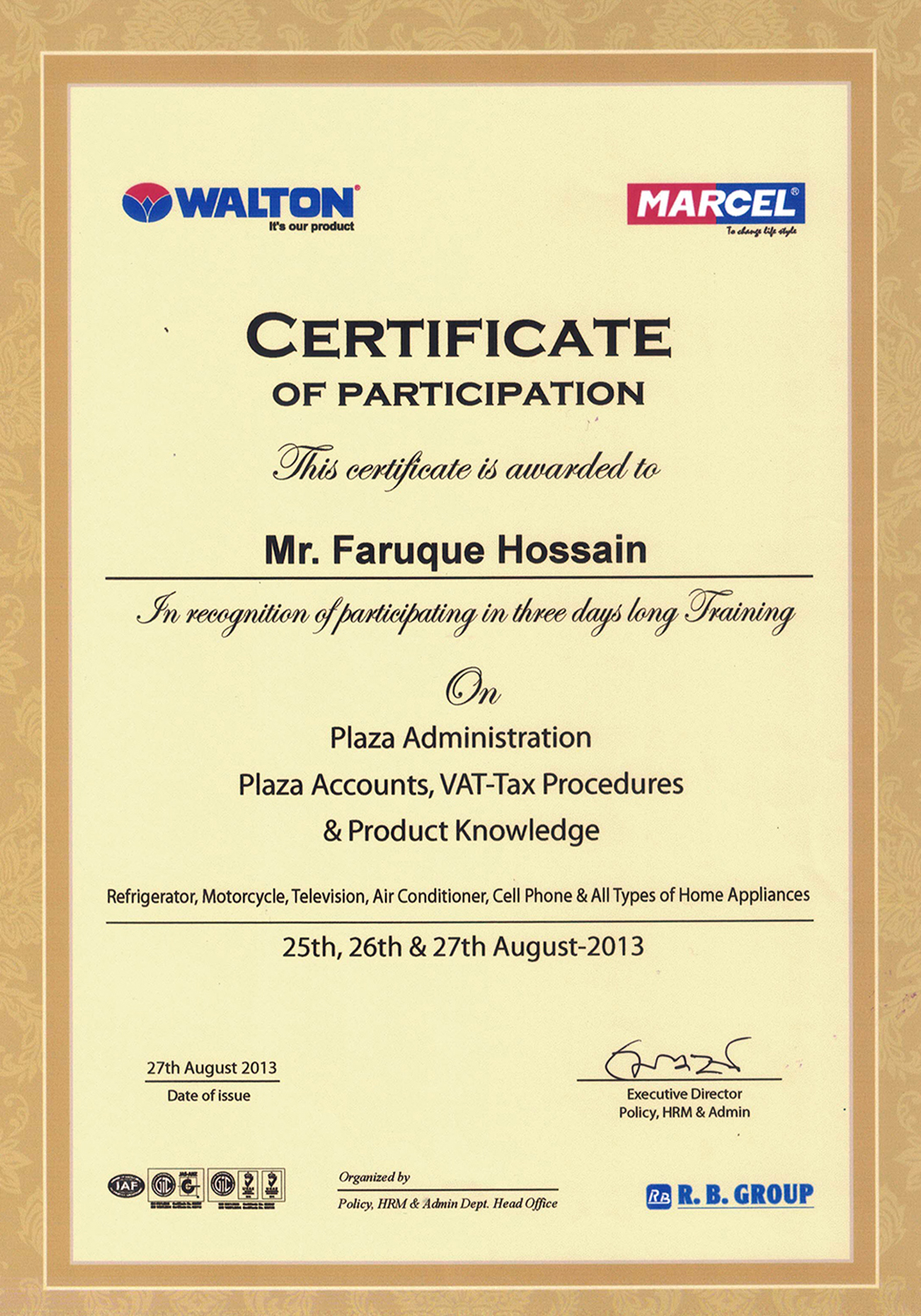 Training on Accounce,Vat & Tax-2013